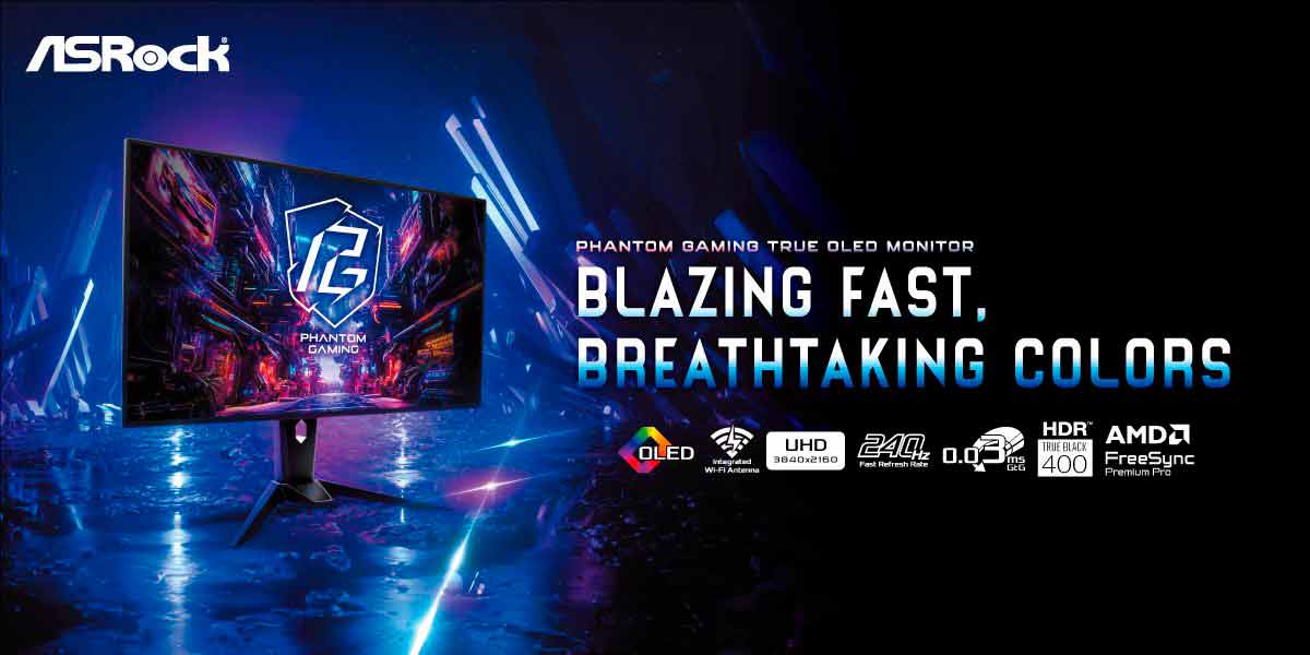 Además, ASRock presentó el nuevo modelo Phantom Gaming PGO32UFS2B, de 32 pulgadas, que cuenta con un panel OLED, resolución Ultra High Definition (UHD, 3840 x 2160 píxeles) y compatibilidad con AMD FreeSync Premium Pro.