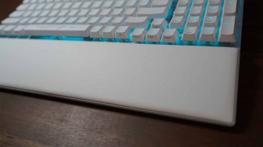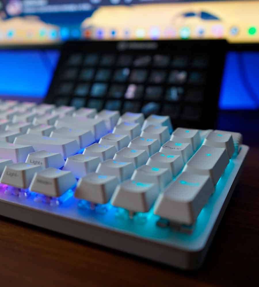 No dispone de una pantalla OLED, pero ofrece funciones útiles en otros aspectos, como teclas con sub-leyendas dedicadas para controlar funciones de grabación en la barra de juegos de Windows, un botón multifuncional y un rodillo para controlar la reproducción de medios y la iluminación, lo cual es un detalle apreciable. También incluye un reposamuñecas cómodo que se fija de manera imantada, proporcionando una mejor ergonomía.