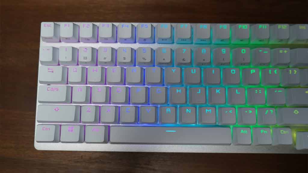 El diseño al 96% es interesante, moviendo las teclas de navegación a la fila de funciones y acercando el teclado numérico y las teclas de dirección a las teclas principales alfanuméricas. Este diseño no es común en los teclados gamer, pero ha ganado popularidad entre los fans a lo largo del tiempo.