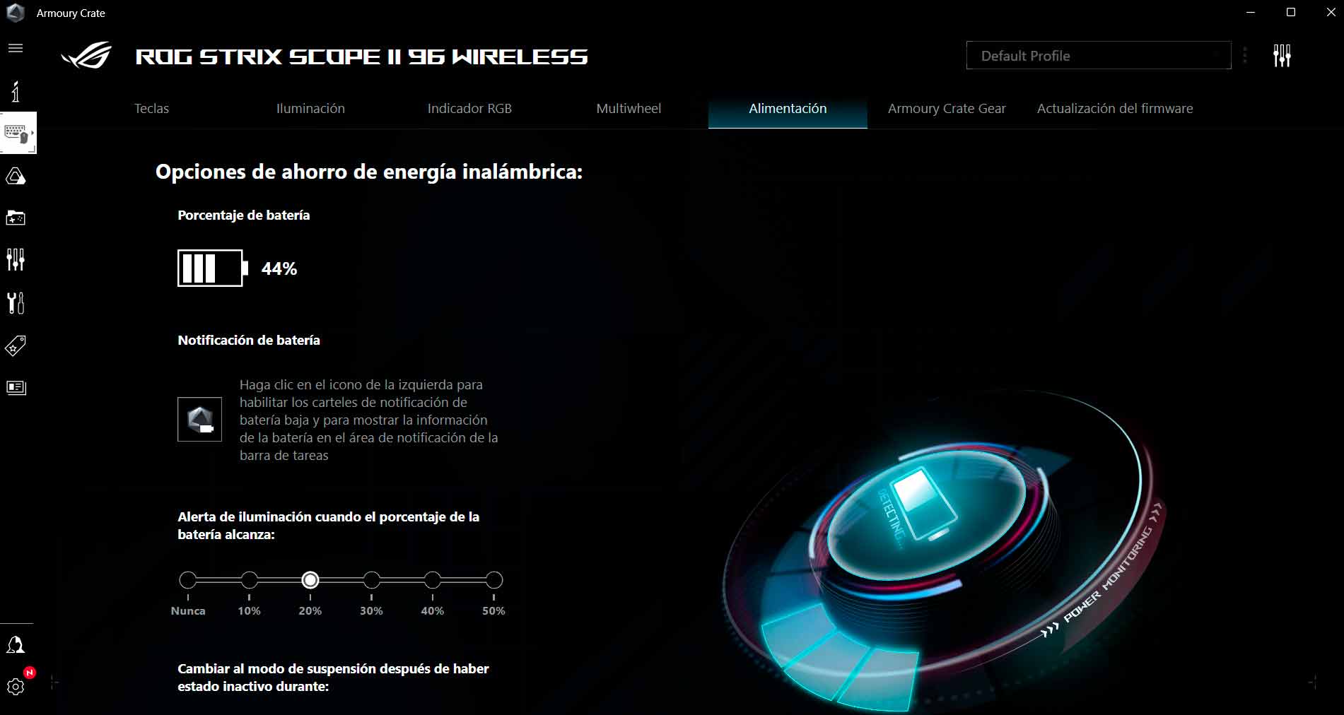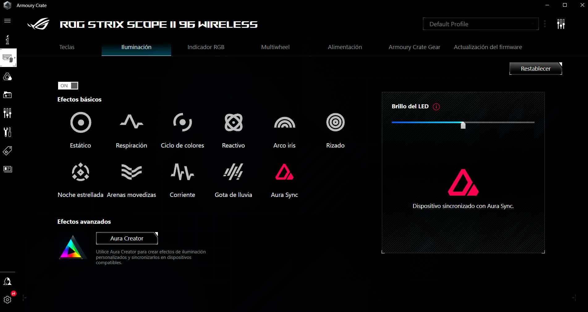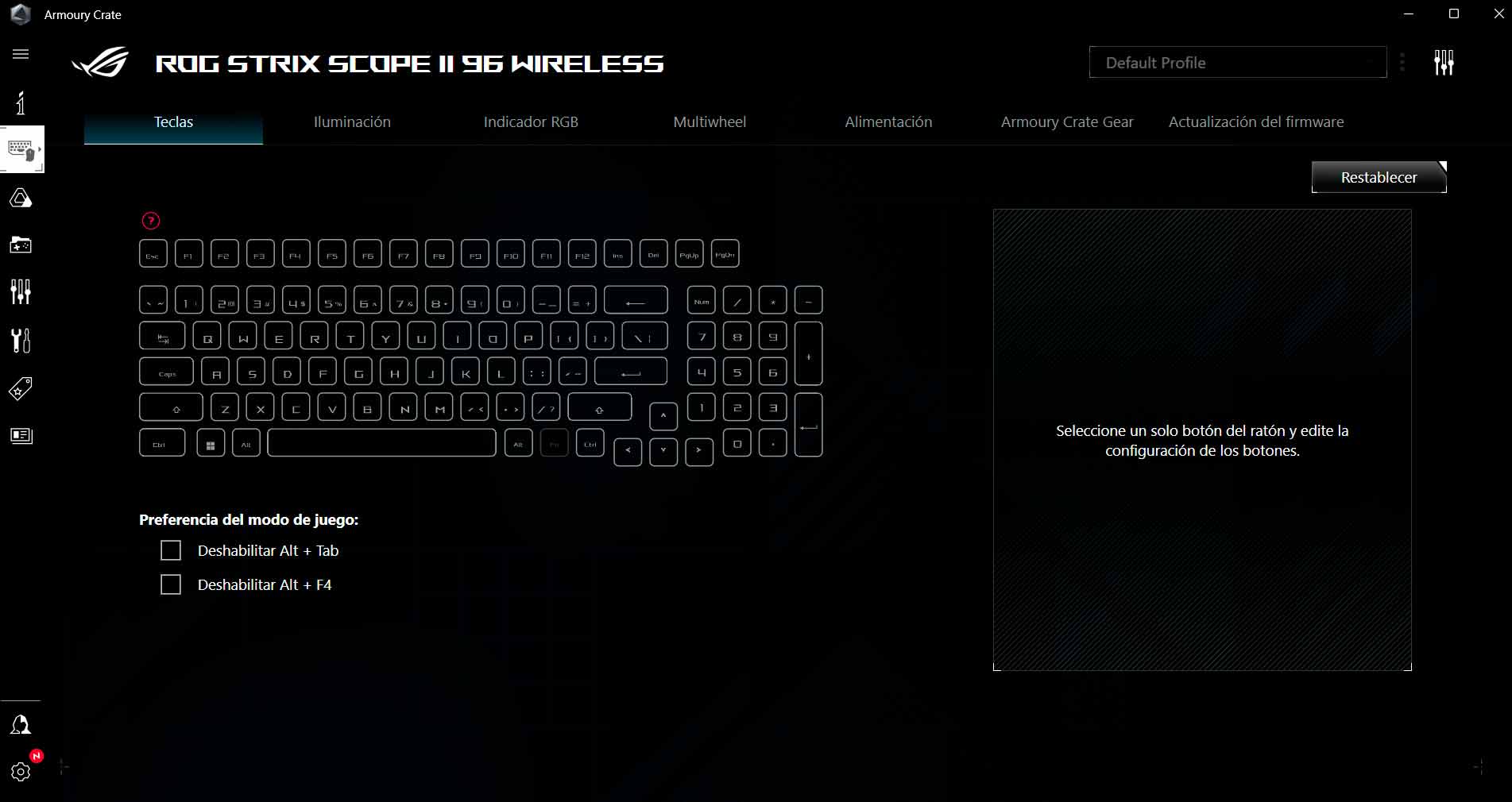 El ROG Armoury Crate sigue siendo un tanto incómodo, con tiempos de carga lentos y una funcionalidad bastante estándar, en comparación con lo que otros teclados y su software ofrecen. Es una herramienta necesaria, no opcional, ya que la utilizas para actualizar el firmware del teclado.