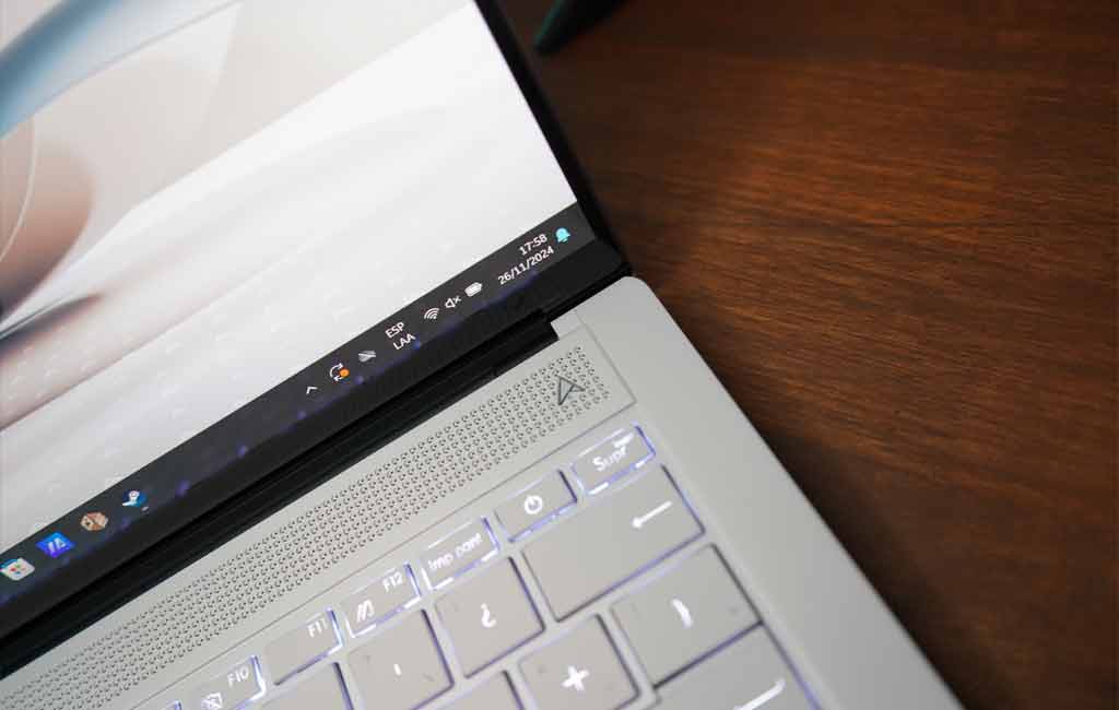La webcam no es su punto fuerte. Aunque tiene resolución 1080p, la calidad de la imagen puede ser algo borrosa y con pocos detalles si no cuenta con buena iluminación. La mayoría de las luces del hogar no serán suficientes, aunque incluye un emisor IR para facilitar el inicio de sesión mediante reconocimiento facial. En cuanto a los altavoces, la Asus Zenbook S14 OLED cumple bien. Tiene cuatro controladores con la firma Harman Kardon, un buen nivel de volumen y un detalle poco común en laptops con Windows: presencia de graves.