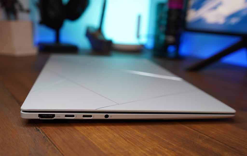 En cuanto a conectividad, la Zenbook mantiene un equilibrio entre estilo y funcionalidad. A pesar de su diseño delgado, incluye un puerto USB-A, HDMI de tamaño completo y un conector para auriculares de 3.5 mm, características que muchas marcas han eliminado. También incorpora dos puertos Thunderbolt 4 de alta velocidad.