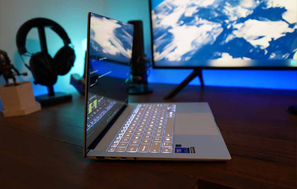El teclado combina un recorrido corto con una retroalimentación poco clickeante. Aunque este último aspecto me agrada, no tanto cuando se combina con un recorrido limitado. Como ocurre con muchas laptops diseñadas pensando en la portabilidad y el estilo, sería ideal contar con un poco más de profundidad en las teclas. Fuera de eso, el teclado destaca por su retroiluminación brillante, perfecta para usarlo incluso bajo luz intensa.