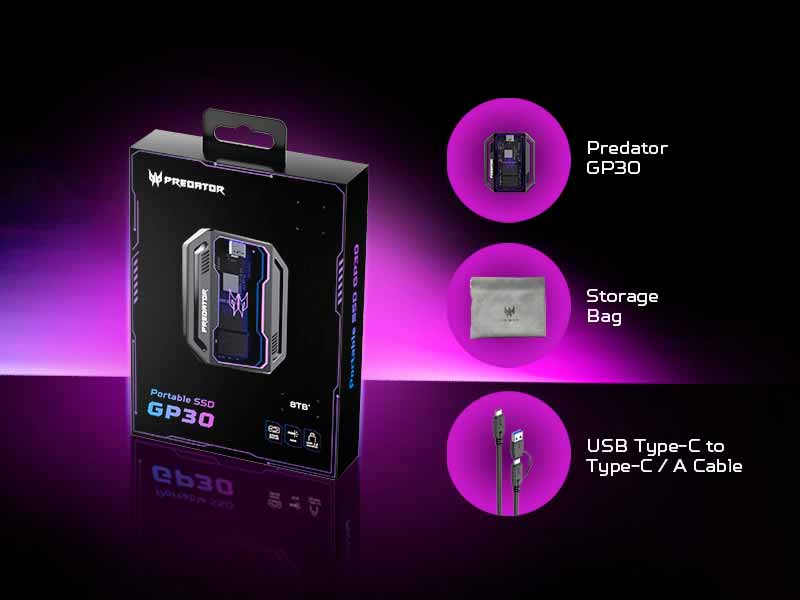 El Predator GP30 se destaca por su diseño con iluminación RGB dinámica, que cambia de color según el uso del dispositivo: resplandece en púrpura en modo reposo y parpadea en siete colores durante la transferencia de datos. Además, ofrece compatibilidad multiplataforma, funcionando con Windows 10/11, macOS, iOS, Android, HarmonyOS y PlayStation. Su conectividad dual USB-A/C permite transferencias de datos entre una amplia variedad de dispositivos, como smartphones, computadoras y consolas.