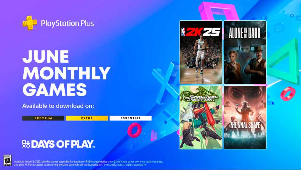 Desde el 3 hasta el 30 de junio, todos los suscriptores de PlayStation Plus podrán descargar y jugar Alone in the Dark (2024), Bomb Rush Cyberfunk y NBA 2K25, disponibles para PS4 y PS5. Además, Destiny 2: The Final Shape estará gratis desde el 28 de mayo para todos los niveles.