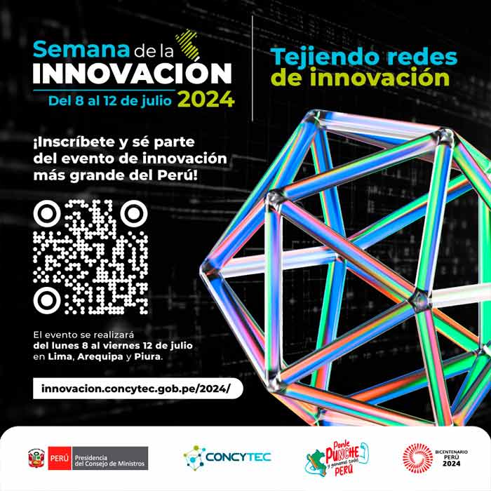 La Semana de la Innovación tiene como objetivo visibilizar y fomentar las diversas experiencias innovadoras que ya están generando un impacto positivo en el país, tanto económica, ambiental como socialmente. Las inscripciones para el evento están abiertas y pueden realizarse a través del portal oficial: https://innovacion.concytec.gob.pe/2024/. Para más información, los interesados pueden comunicarse por correo electrónico a semanadelainnovacion@concytec.gob.pe.