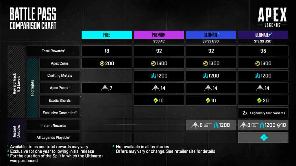 Mientras que el pase de batalla de Apex Legends actualmente dura toda la temporada y tiene 110 niveles, en adelante, cada temporada ofrecerá dos pases de batalla, uno para cada división, y ambos incluirán 60 niveles.