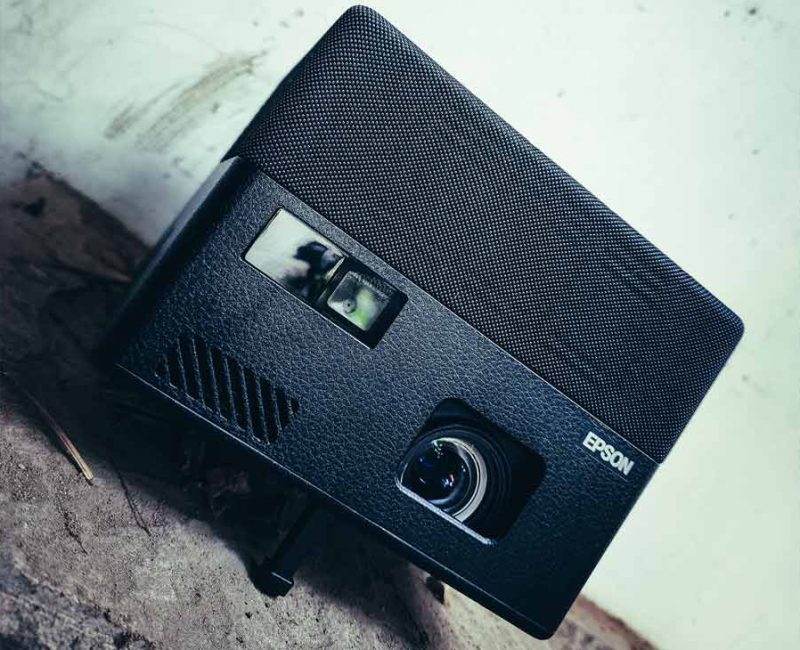 El Epson EpiqVision EF-12 es uno de los proyectores con mejor diseño en el mercado. Debido a su forma en cubo negro, tiene el estilo de una clásica cámara negra vintage con algunos toques futuristas.