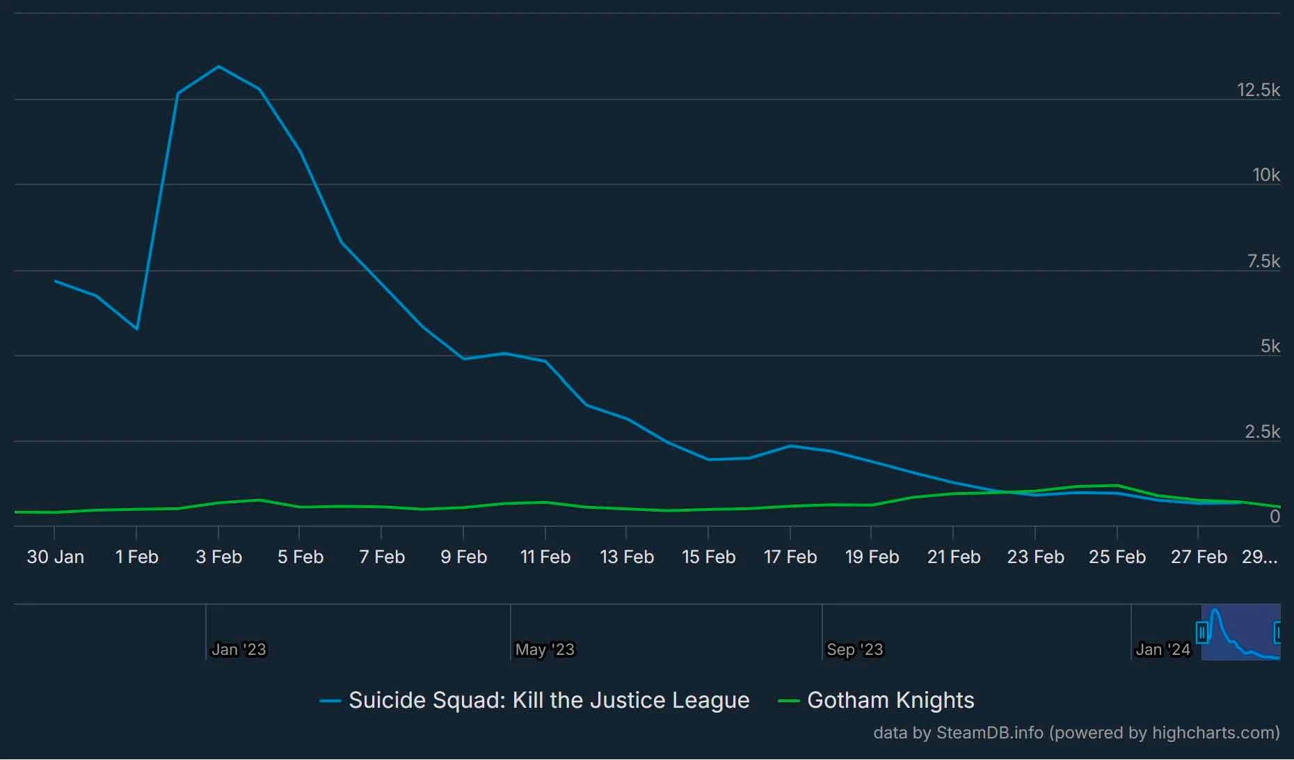De hecho, Gotham Knights ha estado atrayendo ligeramente a más jugadores en la última semana, con un promedio de 881 jugadores simultáneos por día en comparación con el promedio de Suicide Squad de 754.