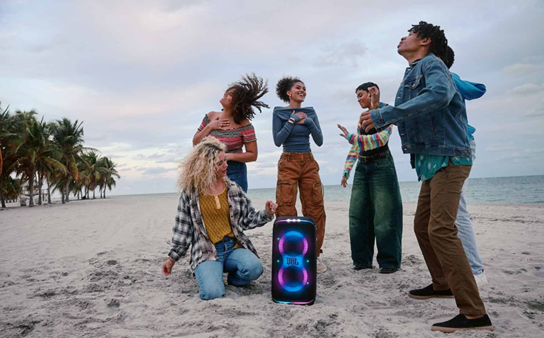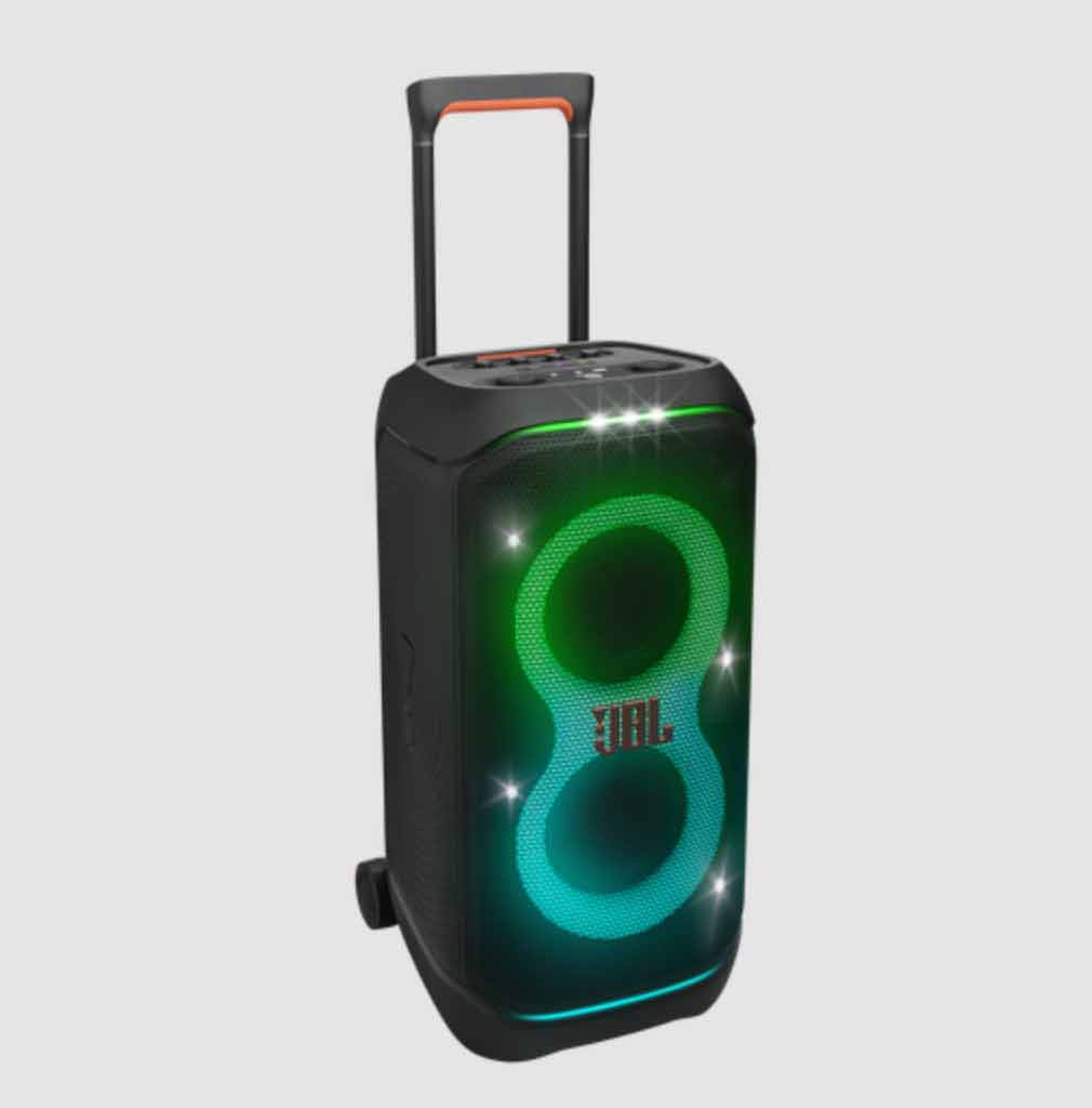 - Fiesta en cualquier lugar: Con el JBL PartyBox Stage 320, puedes comenzar la fiesta en cualquier momento y lugar. Este altavoz portátil ofrece un sonido JBL Pro potente y un espectáculo de luces sincronizado con tu música. Su asa telescópica robusta y ruedas facilitan el transporte, y su batería reemplazable proporciona hasta 18 horas de reproducción continua. Con protección IPX4 contra salpicaduras y la capacidad de conectar varios altavoces a través de la aplicación JBL PartyBox, está listo para cualquier situación.