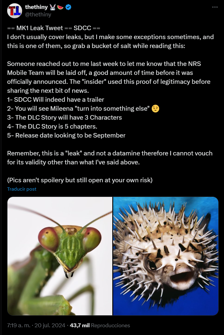 La última información sobre el posible DLC de Mortal Kombat 1 proviene del usuario de X thethiny, quien ha compartido información precisa sobre los juegos de Mortal Kombat en el pasado a través de filtraciones y datamining. Sin embargo, este rumor es uno en el que el informante admite que no está completamente seguro, ya que proviene de una fuente anónima en lugar de un datamine. La fuente supuestamente compartió información precisa sobre despidos que afectaron a los desarrolladores móviles de NetherRealm antes de que los individuos confirmaran que efectivamente habían sido despedidos, por lo que hay algo de legitimidad en el rumor aunque aún no está confirmado.