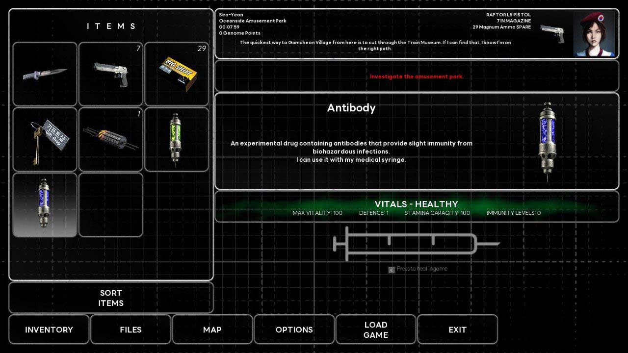 En lo visual, el compromiso con esa inspiración retro es total. Los fondos prerenderizados, las cámaras fijas y los escenarios estilizados evocan directamente la estética del survival horror de la era de la PlayStation original. Incluso los modelos de personajes, ligeramente exagerados y a veces algo toscos, terminan funcionando a favor del tono del juego. No busca verse moderno; busca capturar una sensibilidad específica. Hasta hay secuencias tipo FMV y movimientos de cámara que se sienten como homenajes directos a las raíces del género. El diseño de sonido también hace mucho por sostener la tensión. Muchas veces escuchas a los enemigos antes de verlos, mientras el sonido ambiental cambia según la zona y mantiene esa sensación de amenaza latente. El doblaje encaja con ese tono entre serio y accidentalmente extraño que tenían muchos clásicos, y detalles como que Seo-Yeon alterne entre coreano e inglés le dan más personalidad al mundo. Son pequeños elementos que hacen que el escenario se sienta más vivo de lo esperado.