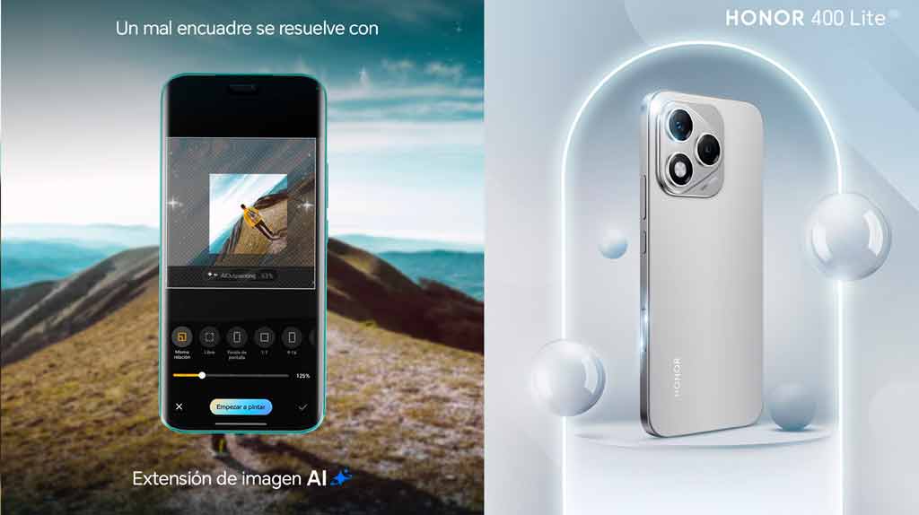 Otra innovación del HONOR 400 Lite es su herramienta “Pintura con IA”, una función de edición fotográfica basada en inteligencia artificial generativa. Esta tecnología permite ampliar y enriquecer imágenes más allá de sus límites originales, logrando composiciones visuales sorprendentes que transforman fotos comunes en verdaderas obras de arte digital.