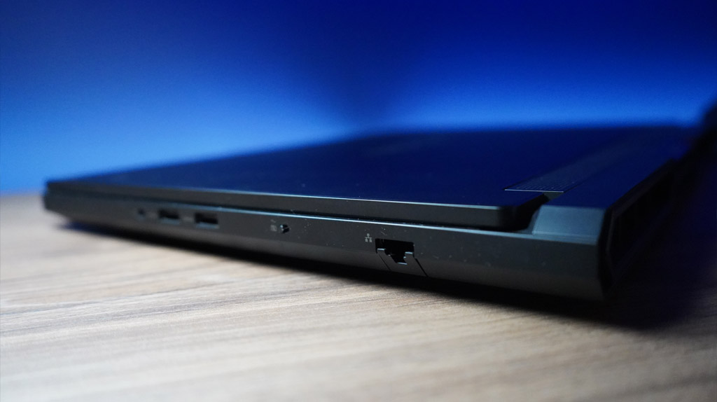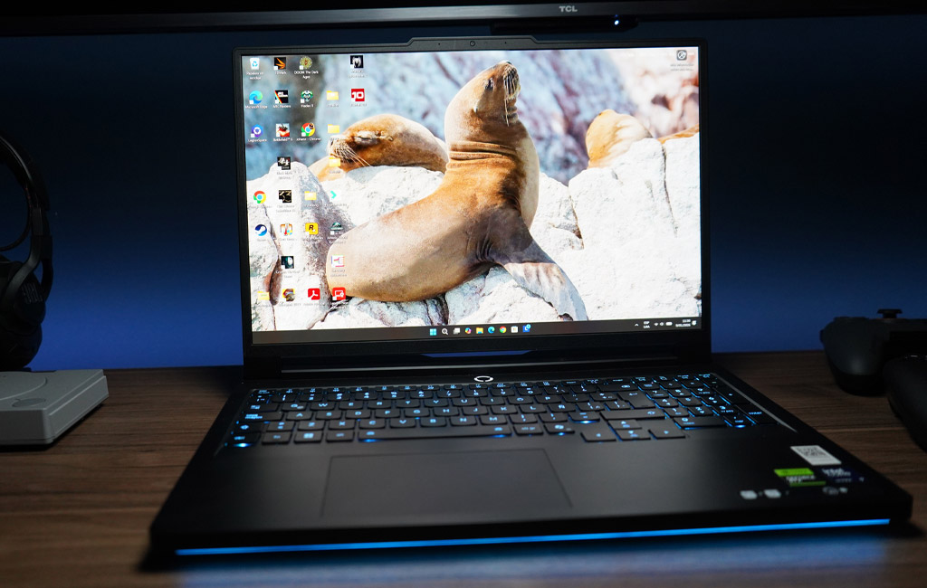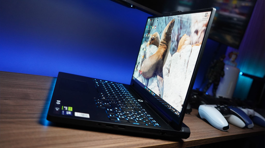 El chasis de aluminio con acabado mate en tono oscuro refuerza inmediatamente esa sensación premium. Al sostenerla y usarla, la laptop se percibe sólida y bien ensamblada, sin flexiones ni ruidos extraños, incluso al aplicar presión en la base o la tapa. Es un equipo que transmite durabilidad y confianza, algo clave cuando se trata de una laptop pensada para sesiones prolongadas de juego y trabajo exigente.