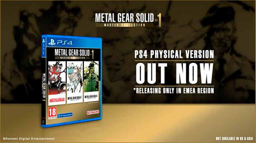 Konami Digital Entertainment B.V. ha informado sobre la disponibilidad de «METAL GEAR SOLID: MASTER COLLECTION Vol.1» para PlayStation®4, ahora disponible de forma exclusiva en los países de EMEA. Aunque se lanzó inicialmente el 24 de octubre en formato digital, los usuarios de PlayStation®4 ahora tienen la opción de elegir entre las dos versiones del juego.