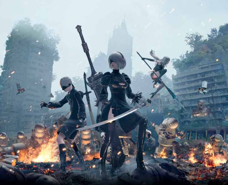 NieR: Automata se lanzó primero para PS4 antes de llegar a PC, Xbox One y Nintendo Switch. Como continuación de Drakengard, está ambientado en un futuro lejano con invasión alienígena en la Tierra y la humanidad refugiada en la Luna. Como parte de YoRHa, los androides 2B y 9S participan en incursiones para derrotar a las máquinas creadas por los alienígenas.