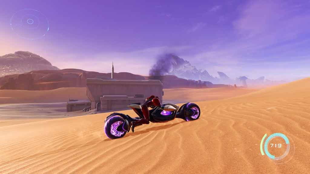 Montar la moto permitirá a Samus desplazarse rápidamente por el planeta Byrus y realizar acciones especiales, como combatir enemigos y destruir depósitos de minerales. Los movimientos incluyen impulso para velocidad y empuje de enemigos, deslizamiento de poder para eliminar varios objetivos, y proyectiles que persiguen hasta cinco enemigos y regresan como boomerang.