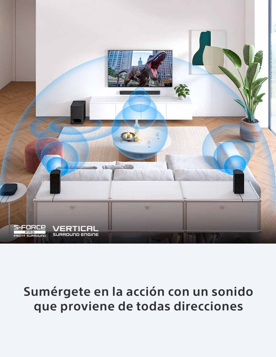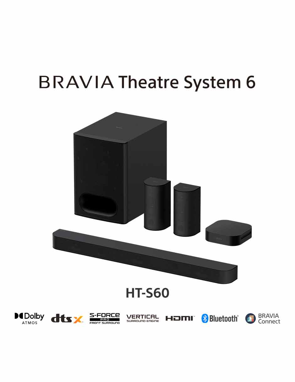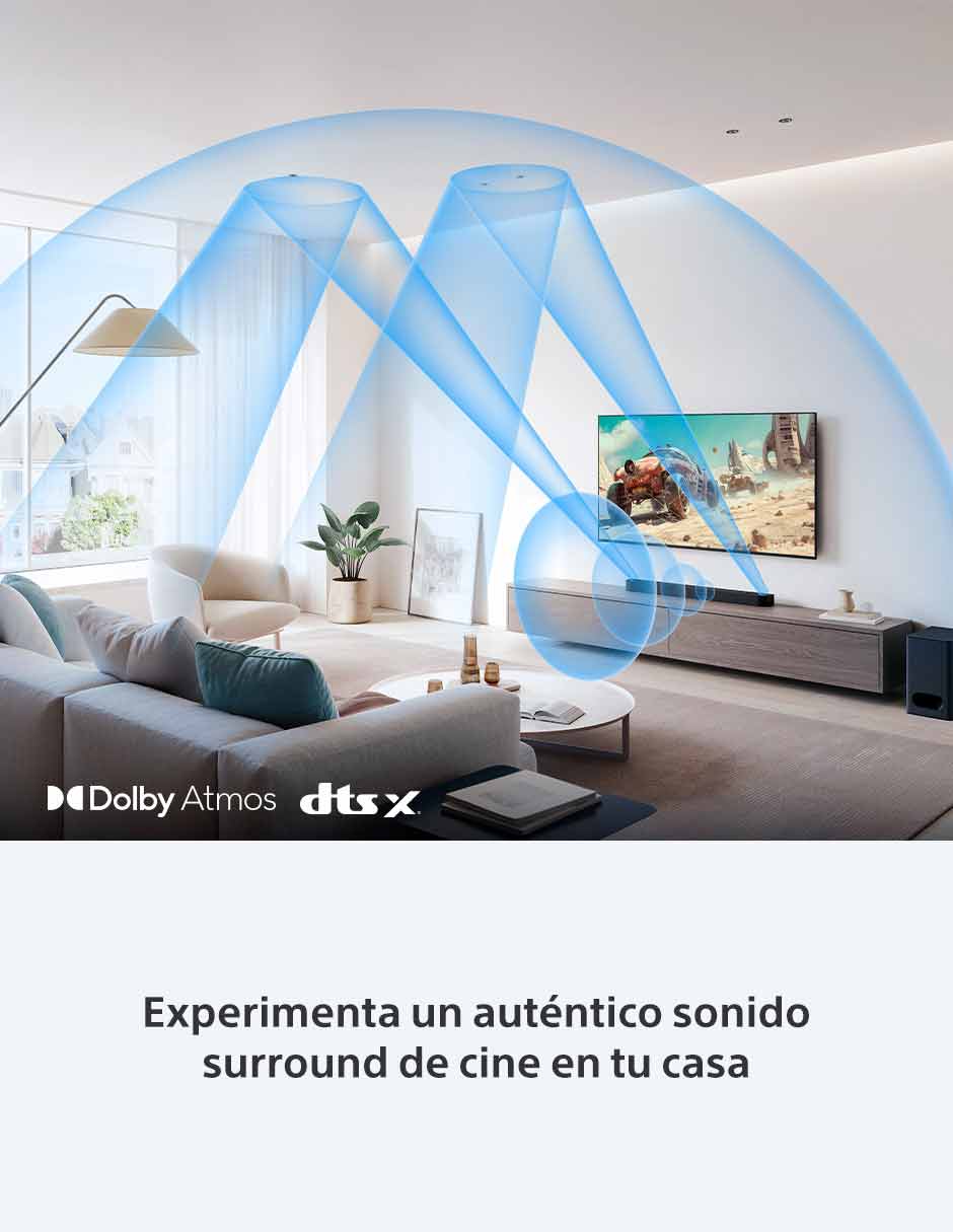 El sistema de cine BRAVIA Theatre System 6 de 5.1 canales y 1000 W de potencia ofrece un sonido más profundo e intenso, compatible con Dolby Atmos y DTS:X, y tecnologías que permiten escuchar los contenidos como fueron creados originalmente. Además, Voice Zoom 3™, impulsado por IA, ajusta el volumen de las voces humanas para que hasta los diálogos más suaves se escuchen claramente.